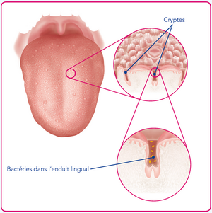 Les personnes souffrant d'halitose présentent un dépôt sur la langue avec une densité de bactéries par unité de superficie 25 fois plus élevée que chez les personnes sans halitose. C'est pourquoi le nettoyage de la langue est particulièrement important.