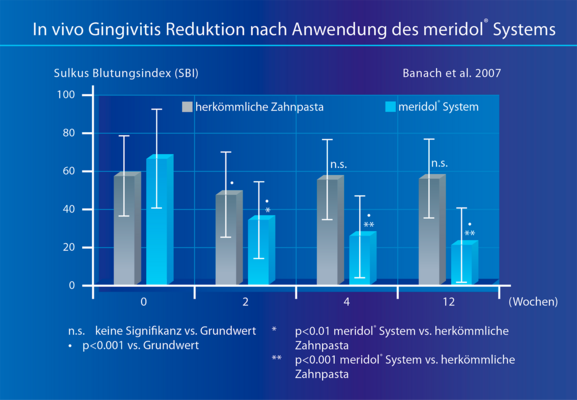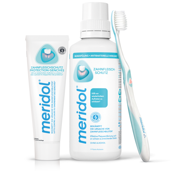 Das meridol® System, bestehend aus Zahnpasta, Mundspülung und Zahnbürste, bietet besonders wirksamen und gleichzeitig sanften Schutz bei Zahnfleischproblemen, indem es vorhandene Plaque-Beläge inaktiviert und die Neubildung von Zahnbelägen hemmt. So fördern die Produkte des meridol Verbunds eine rundum gesunde Mundflora und wirken wie Balsam für Ihr Zahnfleisch.